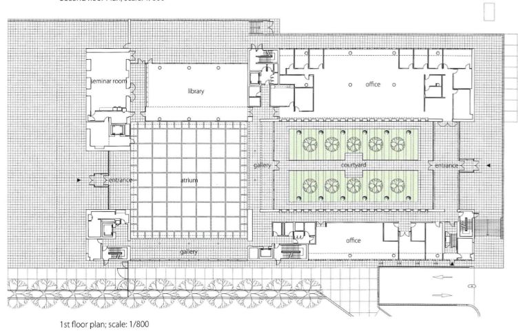 Not only is the Char Bagh at the Delegation influenced by its patron, but also its architect. His Highness thought it important to not only include islamic architecture in the design but also pay tribute to Maki's country of origin, Japan. In the design for the interior courtyard, Maki successfully married Islamic and Japanese traditions together while also being considerate of the buildings location in the Canada's Capitol.