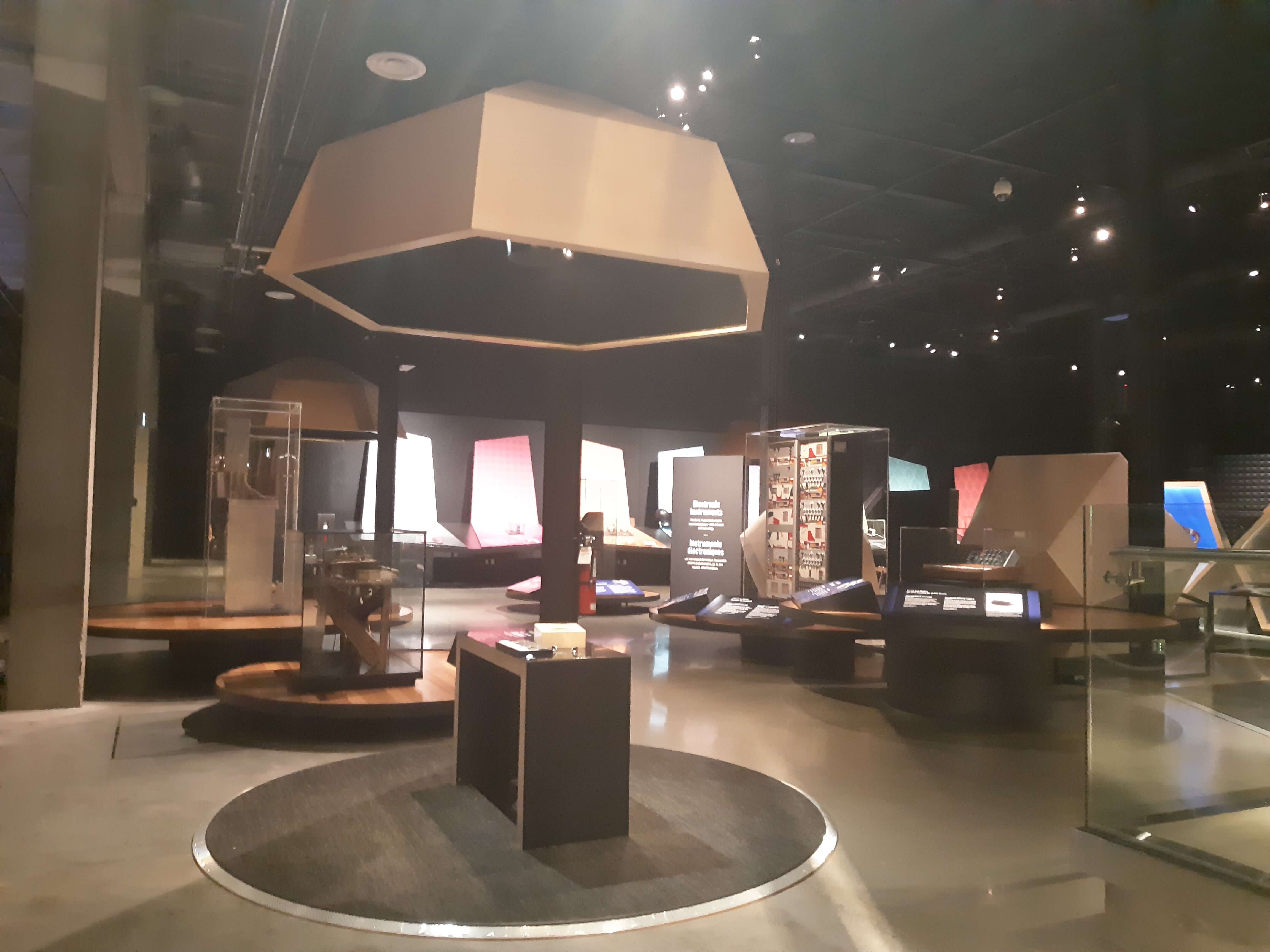 12019-11-27T19:49:17-08:00Keagan Fowler338512480dfac7f8ed9e1b10efd9a411a0c076f3358169plain2019-12-03T09:19:51-08:00Keagan Fowler338512480dfac7f8ed9e1b10efd9a411a0c076f3“On November 17,2017, the Canada Science and Technology Museum marked a pivotal moment in its history. The museum reopened its doors to the public, starting a fresh chapter following a three-year closure and an $80.5=million renewal of its entire building, which originally opened in 1967” (Clouthier, ingeniumcanada.org) (Fig. 6).It is in the current museum where the protagonist interior presents itself, the Sound by Design exhibit. The consideration of sound within the CSTM leading up to this has allowed an accommodation, not a prioritization, of both intentional sound and unintentional sound. Clearly shown is the use of sound to enhance exhibits, yet the sensory experience has been hindered due to the interior design and lack of all encompassing sound consideration. This is still relevant in the renovation, as it is nearly impossible to negate all sound aspects whilst promoting what sounds you do want. The current museum faces issues with an exposed HVAC system, and there is always sound added by visitors. Babaian’s experience highlights this issue: “In the latest reboot of the museum, our design teams, in the exhibit I worked on, wanted an ambient soundtrack, it is never on now. I do not know why it is never on, but I know that when there are lots of people in there there is no point in it being on because you cannot hear it". Contrasting this, In Sound by Design, the curator, Tom Everrett, is careful to consider many aspects of sound design to provide the best sensory experience. Everrett notes that “To ‘design sound’ is to consider not only how sound elements might be introduced to enhance or expand an exhibition’s content, but also how these elements might be managed within the broader acoustic environment of the exhibition space” (Everrett, 1). The exhibit (Fig. 7), with particular lighting and artifact placement which helps mitigate overwhelming visuals, employs materials which assist in providing a better acoustic experience. This in turn helps a visitors experience. For example, In Everrett’s description of the design process he writes: “we opted to apply last-minute structural changes that would ensure that all internal walls could be acoustically treated” (Everrett, 10). The strategies employed assist as well: “creating a sound sketch... could help us determine roughly how many sound-based elements we could afford to introduce” (Everett, 6). Also, avoiding headphones assistance: “excessive reliance on headphones could be detrimental to the overall communal experience of sound we wished to achieve” (Everett, 6). Design restraints did exist however, for example, “Compounding the problem was a museum-wide requirement to that the exhibition adopt an open-concept format” (Everett, 6). The isolating of sounds is prohibited by way of this, but, through the techniques used above a well balanced sensory experience was achieved. These techniques and limitations explain the floor plan quite well, the diversion of sound elements, open plan, proper lighting, modular artifacts, and acoustically considerate materials compose the interior (Fig. 8).