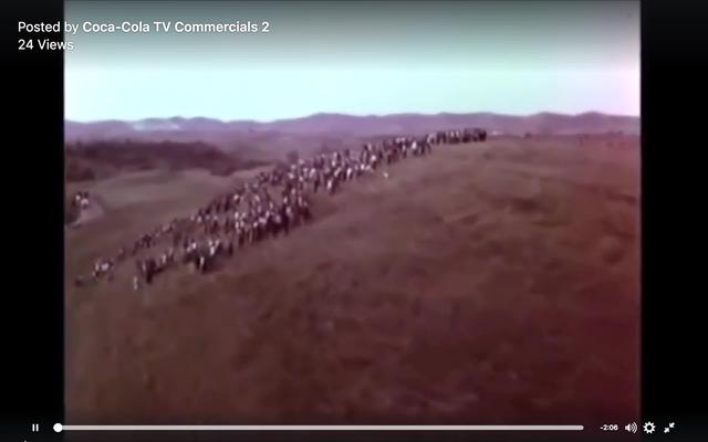 While everything seemed to be in place to portray the utopic vision of global unity, the shooting was almost dystopian. Producers left hundreds of teenage extras shut in buses for four sweltering hours while Wexler and the team filmed the principal cast members. The extras, whom Backer describes as institutionalized “orphans,” were hot and angry at the shoot field marshals, who had not explained to them why they were there, and had failed to share with them any of the Coca-Colas from the truck waiting on-site to supply the commercial. When they were finally let off the buses to populate the commercial’s final dramatic helicopter shot to evoke the earthly connectedness of humanity, and were handed Coke bottles to hold as symbols of harmonious connection, they more accurately portrayed contemporary youth rebellion, storming up the pristine grassy hillside and hurling the bottles at the helicopter. That is, until they ran out of bottles, at which point they “stampeded” down the hillside to the Coke truck and tried to overturn it. Wexler abandoned the project suddenly, forcing the producers to find Italian filmmakers to reshoot the commercial yet again.”[i]