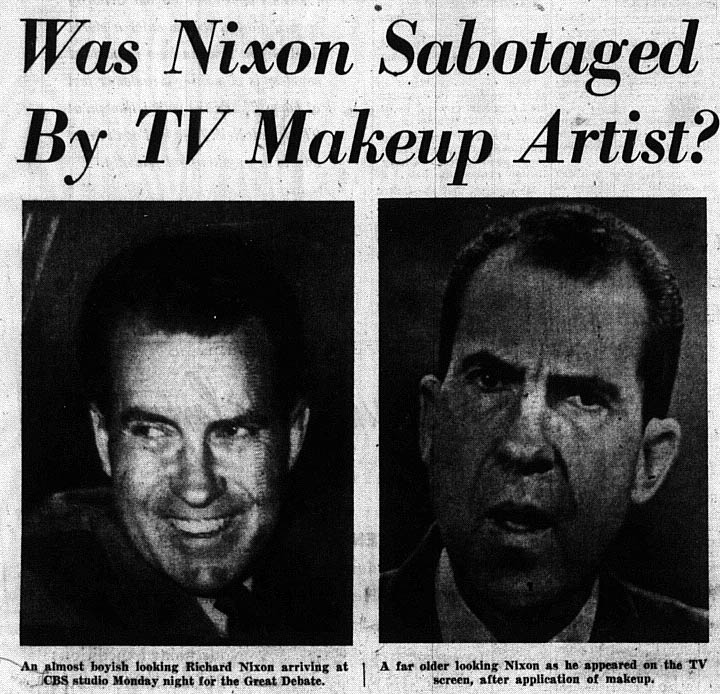 “Was Nixon Sabotaged by TV Makeup Artist?” September 29,1960, Newspaper, Chicago Dailey News, http://static1.1.sqspcdn.com/static/f/357927/24010193/1386192946180/NixonDebate+ChicagoDailyNews+CloseUp.jpg?token=pfbL3oIWLF5HUnOnv%2FuNgyYzhAc%3D
