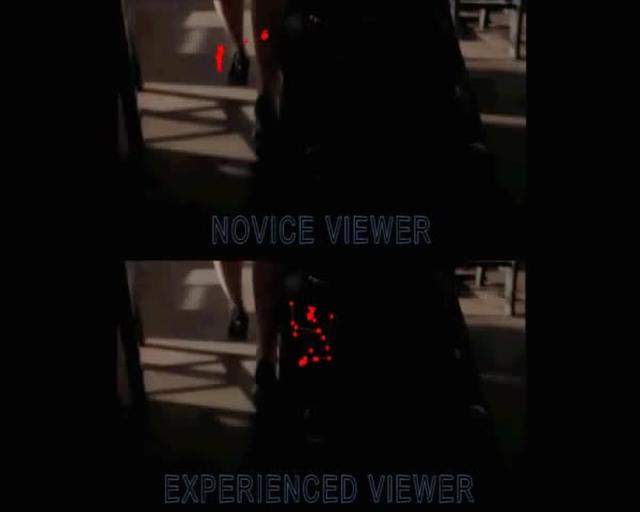 Smith’s latest videos show dual presentation of the same excerpt, comparing eye tracking results of both novice and experienced viewers (on the top and on the bottom of the screen, respectively - see video and screenshot [Figure 11]):