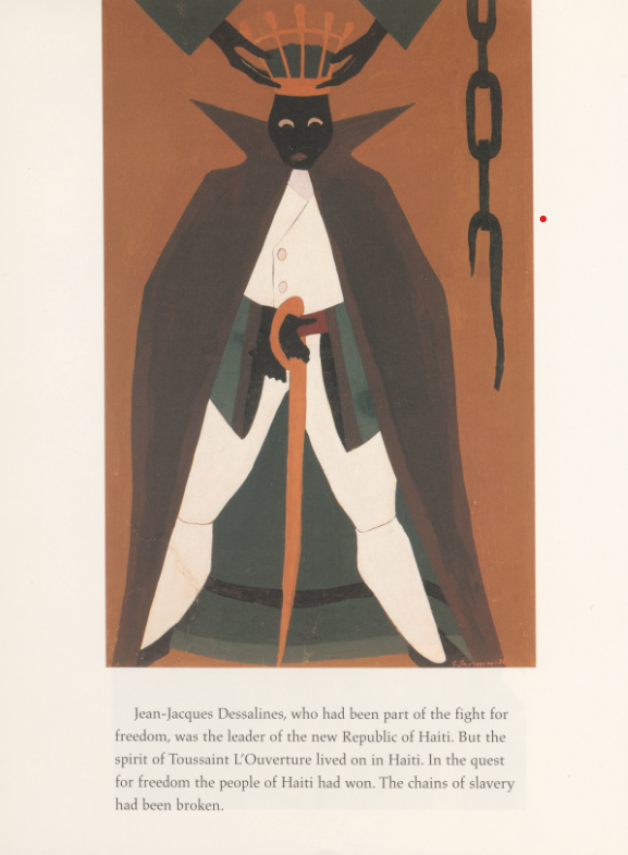 1media/10.png2024-12-12T19:57:16-08:00Sibel Zandi-Sayek73cde7a43bd5eb518df1a2b6db82852f9eafbb80461177Driven by the Great Migration (1916–1970), the Black American diaspora united brilliant minds, transforming Harlem into a hub of creativity and solidarity amid systemic discrimination. This period fueled a powerful Black art movement focused on resistance, community, and hope, known as the “Harlem Renaissance.” Established in 1925, the Schomburg Collection at the 135th Street Branch Library became a cornerstone in educating Harlemites on Black history from around the world. Artists like Langston Hughes and Augusta Savage drew inspiration from this collection, weaving global Black narratives into their work. As the first Black republic born from a successful slave revolution, Haiti resonated deeply with Harlem artists as a model of resilience and pride. Jacob Lawrence’s series on the Haitian Revolution reflects this connection, engaging Black American experiences in a broader global dialogue on anti-colonialism and racial justice.plain2024-12-19T05:50:24-08:00Sibel Zandi-Sayek73cde7a43bd5eb518df1a2b6db82852f9eafbb80Similar to the raw horror depicted in his Hiroshima series and his illustrations for Langston Hughes’s poetry book, One-Way Ticket, Jacob Lawrence’s original 41 paintings portraying Toussaint L’Ouverture’s life vividly illustrate the defeats and violence endured by enslaved people. However, in his print series, he notably omitted images of this brutality, opting instead to create an uplifting representation of Toussaint L’Ouverture’s legacy.