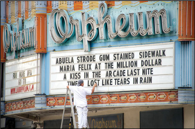 Marquee Survivals: A Multimodal Historiography of Cinema's Recycled SpacesMain MenuIntroductionMarquee Survivals: A Multimodal Historiography of Cinema's Recycled SpacesIntroduction, StartMarquee Survivals: A Multimodal Historiography of Cinema's Recycled SpacesHistories ConcealedHistories Concealed landing pageProjecting 1943Sense of PachucaBroadway as BackgroundSplash page for Broadway as Background / Background as BroadwayPhoto Essay: Marquee StoriesIntro to photo essay: Marquee StoriesPrototypesExploring project prototypesPortfolioEjected Spectators and Inactive Users: Locating Multimodal Historiography In Repurposed Media SpacesVeronica Paredesf39d262eb7e9d13906fe972f3e5494dbae1896bc