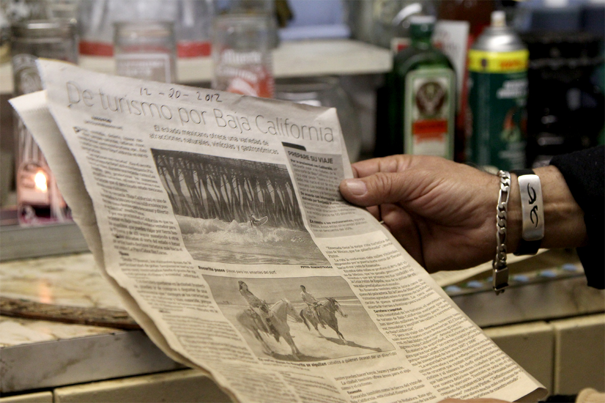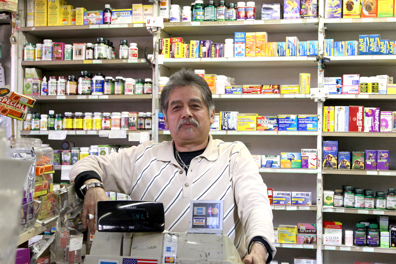 It is through Rafael that I met Francisco, who still works in the area he and Rafael at, at the Million Dollar Farmacia. The farmacia has been covered by the Los Angeles Times recently and Downtown News in the past. Francisco collects these stories and displays them in the store, his archives catalog the place history of Los Angeles and its diasporic nodes. He shows Adán (my partner in interviewing Rafael and Francisco) and me images of the ranch he aspires to return to in Mexico, mixed in with clippings of new stories promoting tourist destinations.