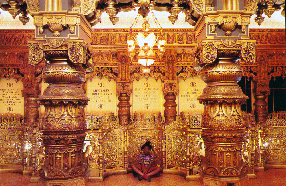 Renovations sought to retain, and heighten, the opulence of the building’s original design. The theater's original "Wonder" Morton pipe organ was restored; gold-plated ornamentation and crystal chandeliers were added to the interior. According to United Church’s website, “authentic Louis XV and XVI furnishings” were also added to enhance the building’s elegance. Red carpet was installed. Posters, featuring portraits of Rev. Ike alongside famous lines from his sermons, and accompanying altars were added to the theater lobby. The famous lines include: “I am NOT other people’s opinions” and “When you discover who you are, it doesn’t matter what you’ve been.” The outer marquee was used to advertise the starting time of Sunday services (2:45pm) while the inner marquee read: “Come on in or smile as you pass.”