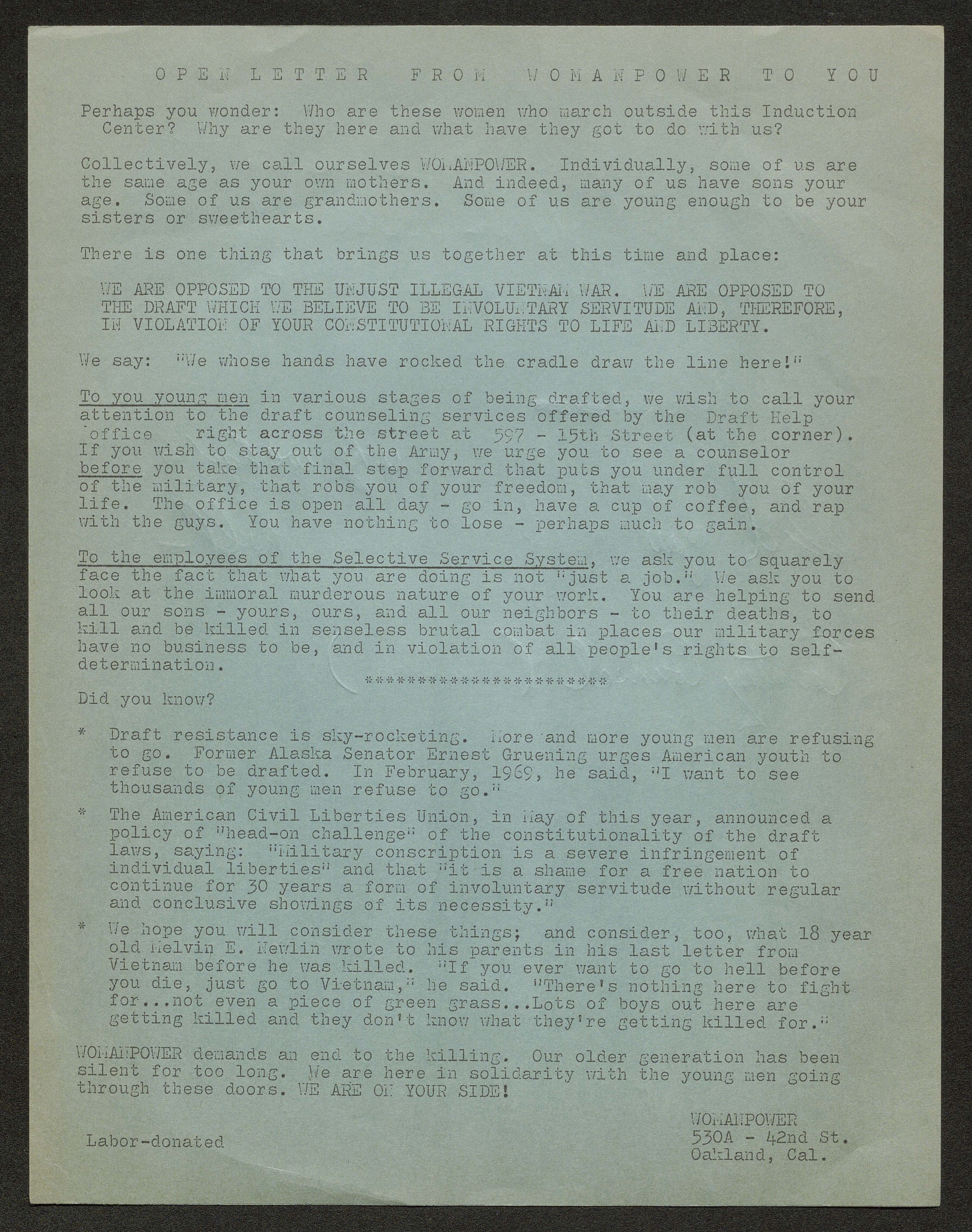 [10] "Victory Newsletter, no. 1," Subject Files, Drawer 05-03, June L. Mazer Lesbian Archives, Los Angeles, CA.