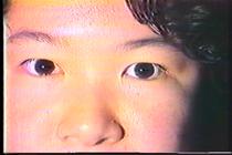 Other than as elements of detournèment, music is also used as a structuring element early in the series. In Aletheia, processed images of Braille text are edited to the discordant strings played by the Kronos Quartet, while close-up images of Asian eyes are cut to the rapid-fire punk chords of the Angry Samoans. At the beginning of Operculum, a montage of images related to cosmetic surgery matches the beat of a Stereo MCs song. A beautiful sequence of two blindfolded Asian women making love in Kore is edited to the ecstatic melodies of Loop Guru. In these sequences, Tran’s editing strategy is similar to that of music videos, in that the soundtrack drives the visual imagery. The relationship between the content of these songs and the visual imagery is primarily structural rather than content-based. While the lyrics of both the Angry Samoans and Stereo MCs do relate to the subject of vision and blindness, the more abstract, non-verbal music of the Kronos Quartet and Loop Guru drive the rhythm and pacing of the editing in their respective sequences. While their emotional color contribute to the mood and ambience in these sequences, their discernible content has very little relationship to the visual imagery. Therefore, unlike the vocal elements discussed earlier, music is used simultaneously and in differing degrees as structural, emotive, as well as textual elements in the Blindness Series. In the more recent Alexia (2000), we see yet another usage of music. The video features a soundtrack that alternates between Ludwig von Beethoven’s “Moonlight Sonata” and voiceover narration. In this video, which focuses on word blindness and metaphor, a Buddhist aphorism, “do not mistake the finger for the moon,” quoted in the beginning of the video, is echoed in the title of the Beethoven score. In this case, the choice of music seems as much conceptual and metaphorical as it is formal.