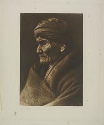 Perhaps no figure better exemplified the image of “the vanishing race” to Curtis in these early years than the image of Geronimo. As in a great many of his Native American portraits, Curtis once again employed the use of a blanket, both as a compositional device to direct the eye, and perhaps to cover any signs of contemporary life that may have been suggested by modern clothing. This image was taken in March 1905 and in his description, Curtis suggests that Geronimo was in a “retrospective mood” as he gazed off --constructed as an aging relic of a people in decline. In the text, Curtis explains that Geronimo was seventy-six years of age when the picture was taken in Carlisle, Pennsylvania, on the day before the inauguration of President Roosevelt. Geronimo had been invited to march in the inaugural parade.