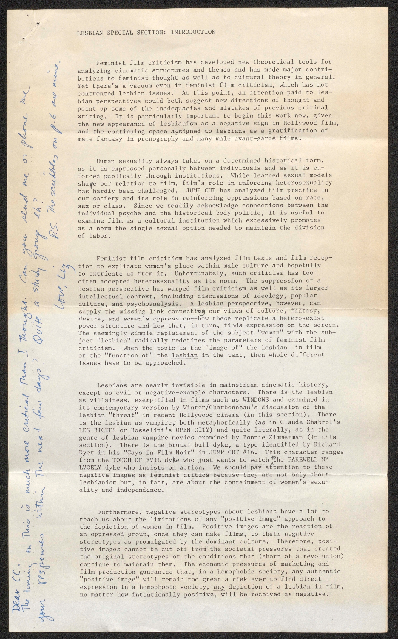 - Lesbian Special Section: Introductions