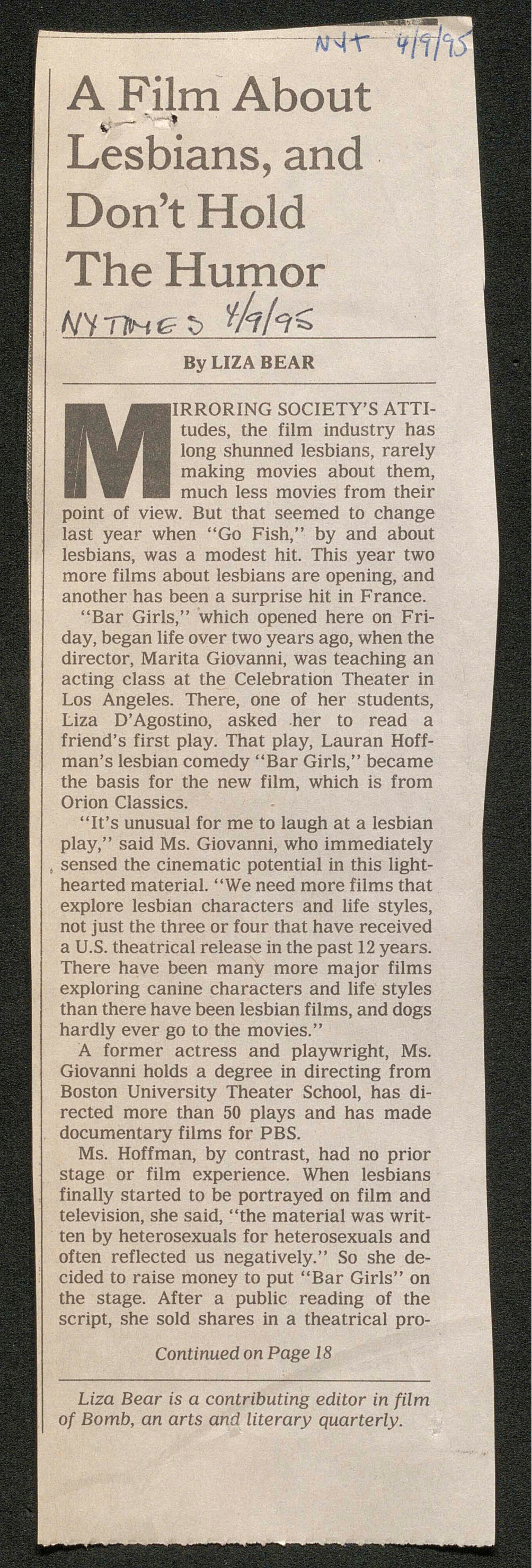 - A Film About Lesbians, and Don't Hold the Humor