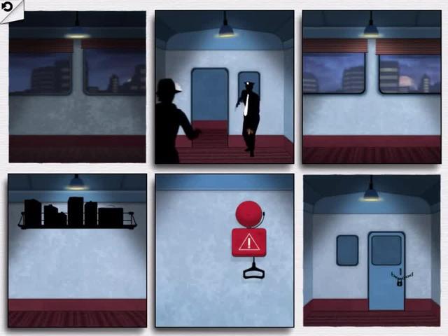 In this sequence, for example, the main character, attempting to escape through a locked door, must use falling luggage to knock out a police officer who holds the key to the lock. The protagonist, propelled by the logic of her own spatial and temporal momentum, which prohibits her doubling back, cannot pick up the key that has fallen right next to her; instead the player must allow her to exit the panel to the right, and then move it such that she can then reenter the very same panel from the left and retrieve the key.