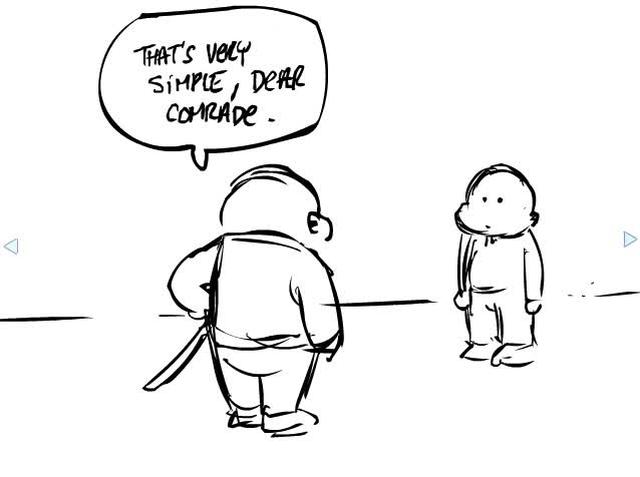 Comixology's “guided view” was made to bring traditional print comics to the screen, but in the world of “born digital” comics there's another approach that’s gained some currency, one that mixes both spatial and temporal transitions. While he wasn’t the first to use the technique, the French illustrator Yves Bigerel, also known as Balak, helped to popularize it with his 2009 work About Digital Comics, a manifesto of sorts. In this piece, the reader advances from one frame to the next by clicking or pressing the right arrow button. The transitions are simple cuts from one image to another. We still read time from left to right as in a traditional Western comic, but each new step can introduce visual changes across the entire field of view and all of its panels simultaneously, an effect that takes advantage of the temporal qualities of the screen.