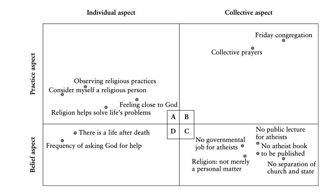 1media/Screen Shot 2024-10-27 at 5.29.11 PM.png2024-10-27T13:42:50-07:00Asal Khers 8fe2adde84e1fbd5622a773ff45de6e34c901d404587118The Practice of Islam Significantly Declining Among Iranians, Especially the Youthimage_header2024-12-08T14:24:28-08:00Asal Khers 8fe2adde84e1fbd5622a773ff45de6e34c901d40Iran's youth have become less religious due to the relationship of faith now being deeply connected to social and political issues. This is changing the generation's attitudes toward religion in a negative direction. Although the Islamic Revolution of 1979 was “cited as evidence of the return of religion in the modern age,” the practice of religion has declined significantly among Iranians, especially the youth (p.115). Kazemipur makes an argument with the “rational-choice theory,” a new framework that states citizens approach religion in a calculated manner, based on what is best for themselves and their benefits versus their losses (p. 116). Statistical measurements from the NSVA survey of 2000 were applied to multidimensional scaling, comparing people's beliefs, practices, and individual and collective aspects of religion. The most significant area of this chart is Zone C, showing that societal and political implications had a strong presence in people’s religious beliefs (Page 119). Iranian youth do not want to engage in traditional practices because these no longer represent religion. Instead, they symbolize the political state and restrictions on personal freedom.